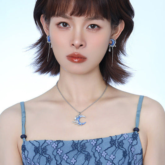Y2K Style Liquid Starlight Blue Moon Necklace