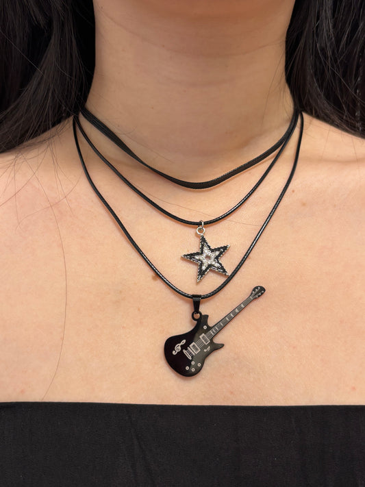 Y2K Punk Star Guitar Stainless Steel Necklace