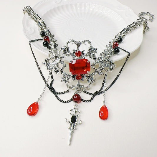 Y2K Gothic Red Rhinestone Beads Choker Necklace