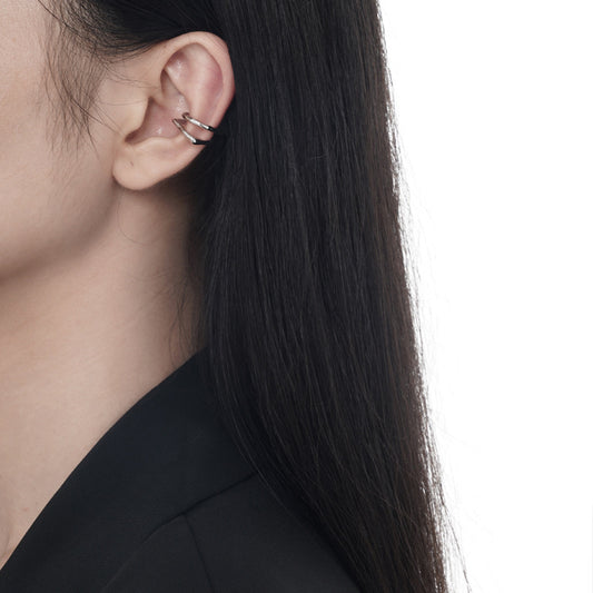 Unisex S925 Silver Simple Double Layers Unique Ear Cuff(single one)