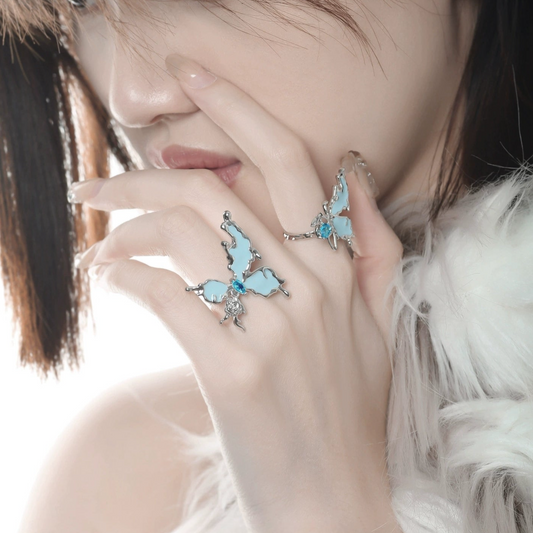 Blue Zircon Asymmetrical Butterfly Metal Stud Earring
