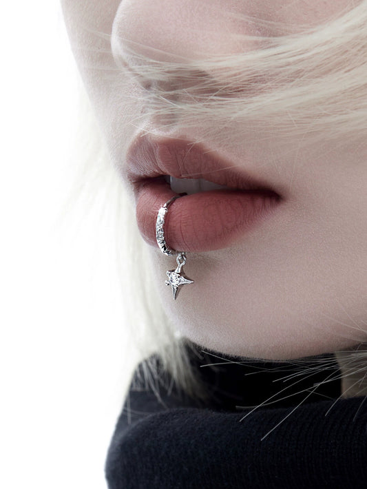 Unisex S925 Silver Star Rhinestone Lip Cuff (no piercing)