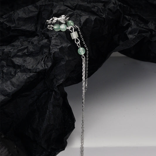 S925 Silver Green Aventurine Beads Tassel Ear Cuff(single one)