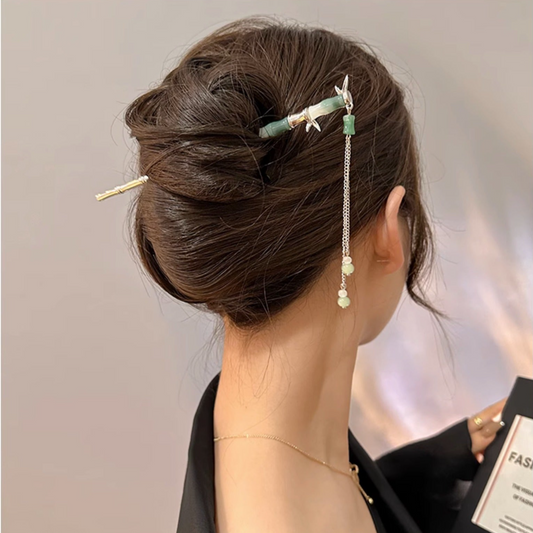 Women Designer Green Bamboo Tassel Hairpin