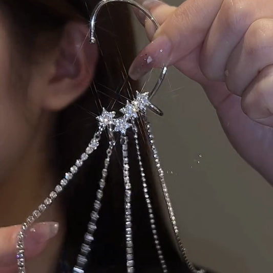 Women Zircon Shining Butterfly Rotating Flower Tassel Ear Cuff