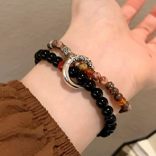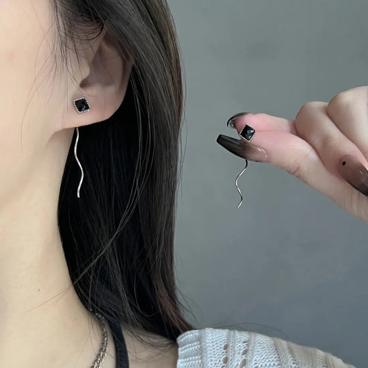 S925 Silver Thread Elegant Wave Black Square Agate Earrings