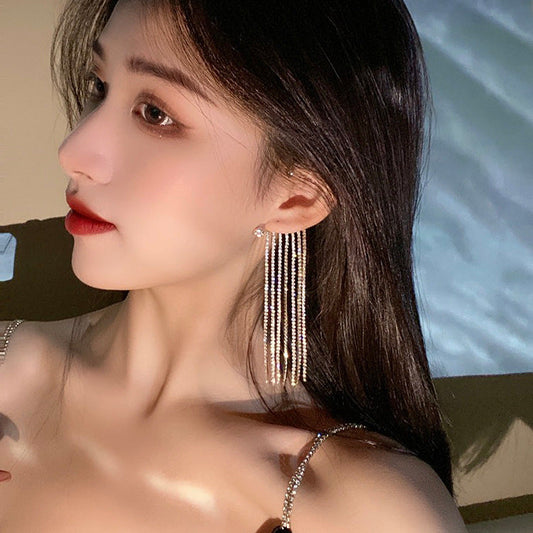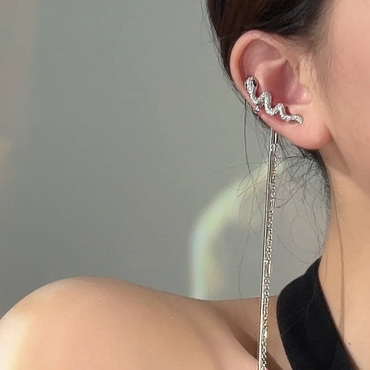 Fancy Women Long Tassel Rhinestone Cuff Earring
