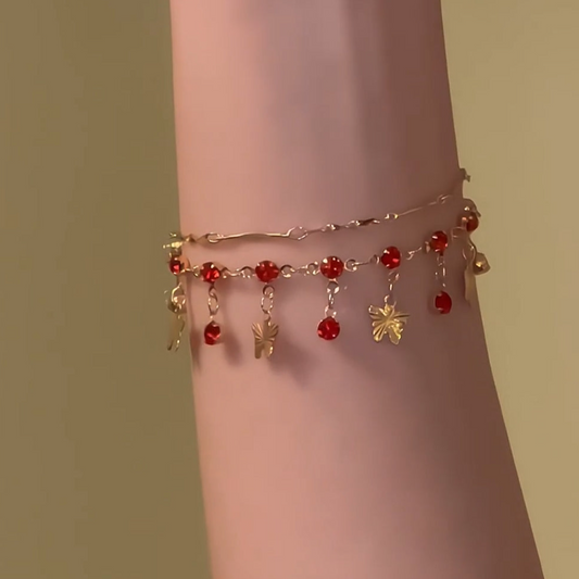 Y2K Girl Red Butterfly Double Layered Chain Necklace & Bracelet