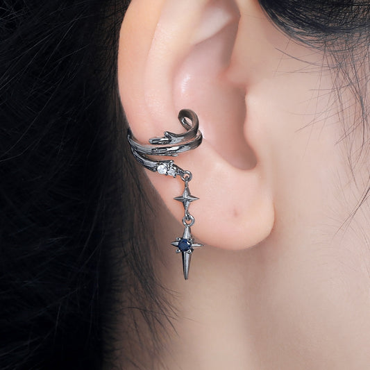 Dark Black Unisex Thorns Star Ear Cuff(no ear piercing)