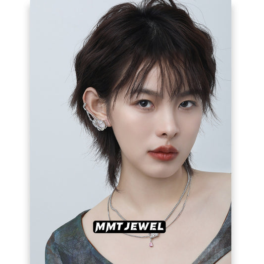 Designer Red Rose Rhinestone Metal Ear Cuff(no ear piercing needed)