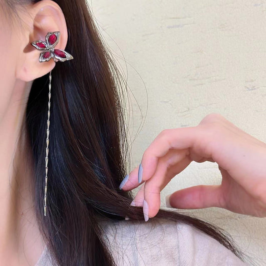 Fancy Butterfly Rhinestone Tassel Ear Cuffs