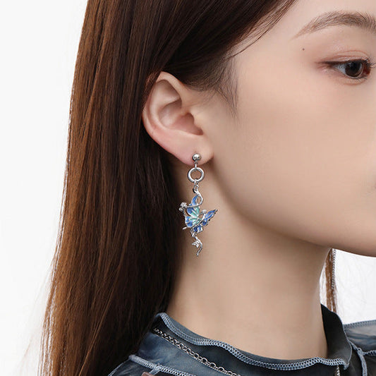 Y2K Blue Butterfly Snake Asymmetrical Stud Earrings