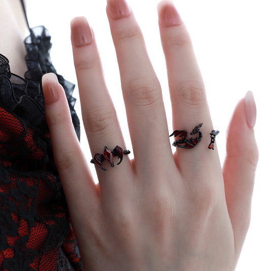 S925 Silver Goth Red Dragon Adjustable Rings
