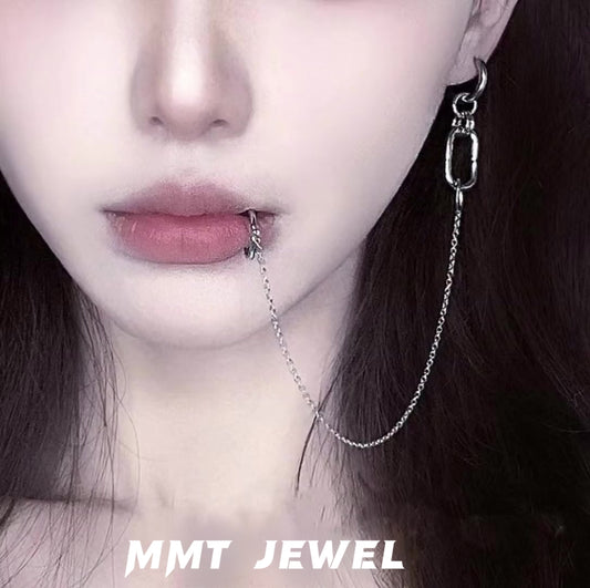 Designer Personality Stud Earrings Lip Chain One piece without Lip Piercing