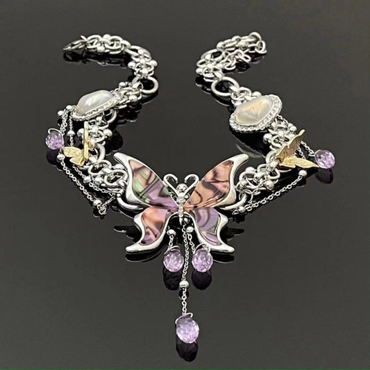 Y2K Spicy Girl Fancy Purple Butterfly Tassel Choker Necklace