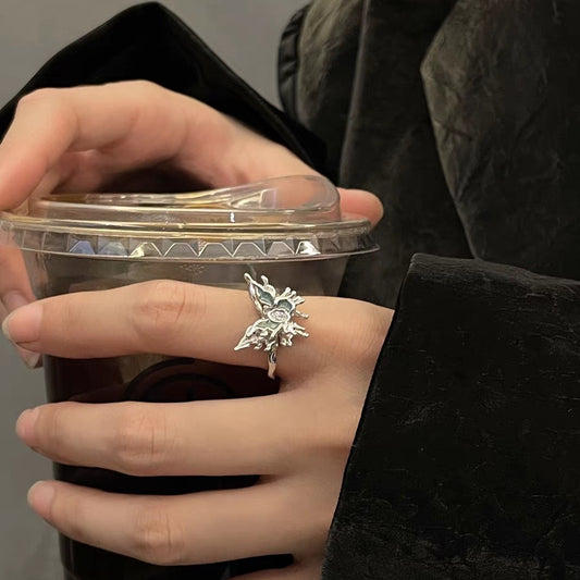 S925 Silver Blue Enamel Technology Butterfly Open Ring