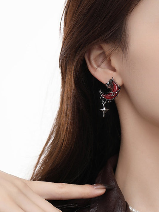 Gothic Style Red Moon Shining Star Asymmetrical Earrings