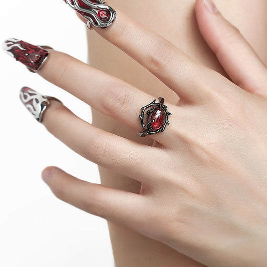 Chic Dark Red Unique Gothic Unisex Open Ring