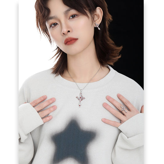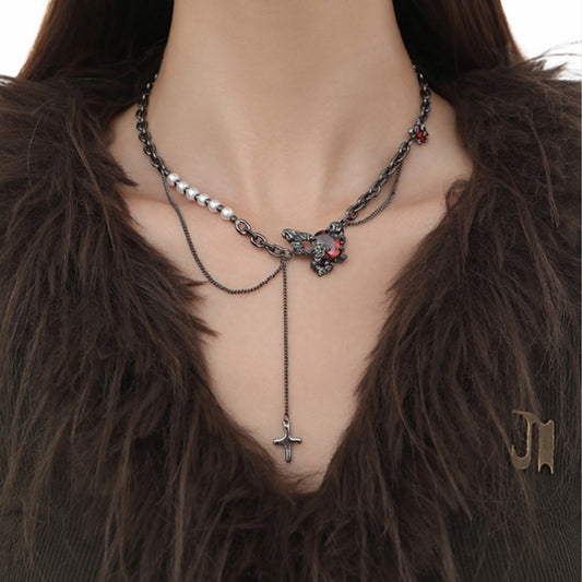 Unisex Goth Vampire Blood Moon & Cross Necklace