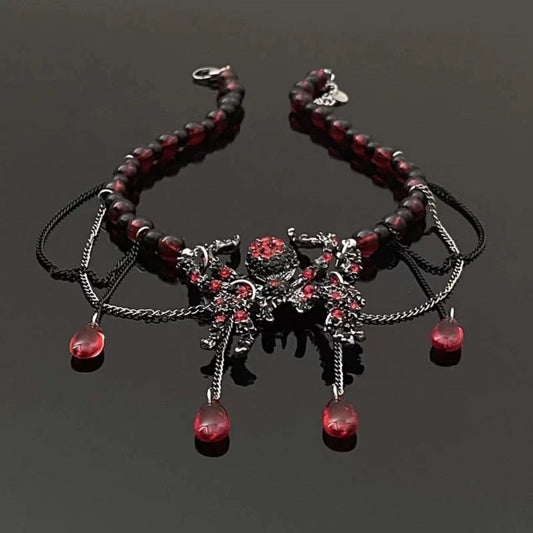 Punk Gothic Women Chic Red Spider Bead Necklace