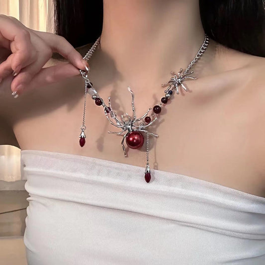 Y2K Chic Spicy Girl Red Spider Metal Necklace