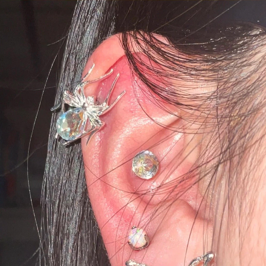 Gothic Style Silver Spider Rhinestone Ear Cuff (Single one)