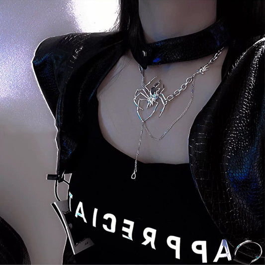 Dark Punk Gothic Style Spider Rhinestone Choker Necklace