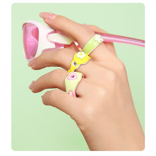 Cute Sweet Flower Heart-shaped Zircon Ring
