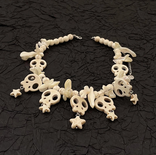 Gothic Unisex Weißer Totenkopf Stern Choker Halskette