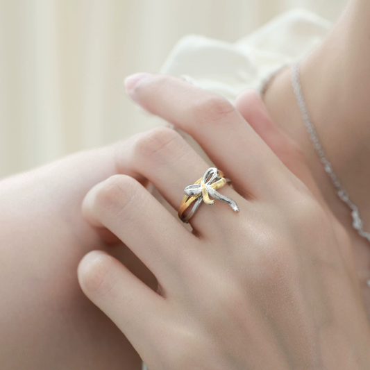 Süße Ohrmanschette mit Schleife aus S925 Silbergold (einzeln)