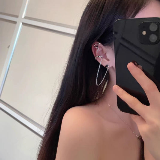 Glänzende Ohrmanschette mit langer Quaste und Schmetterlings-Strasssteinen für Damen (kein Ohrlochstechen)