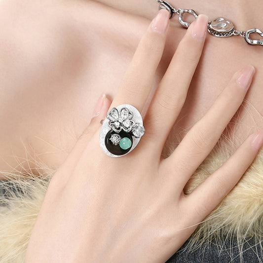 Mädchen Retro Blume Knopf offen Ring
