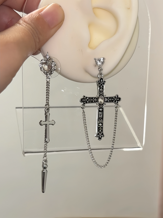 Y2K Gothic Punk Cross Rhinestone Asymmetrical Earrings