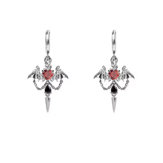 Gothic Bat Rhinestone Heart Hoop Earrings