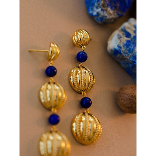 Vintage Chic Ohrhänger aus Kupfer und blauem Stein