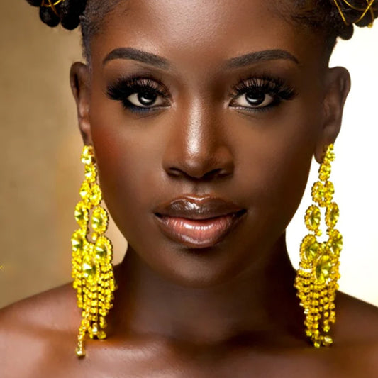 Moderner großer Ohrring mit langer Quaste und Strasssteinen