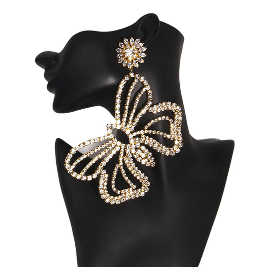Vintage Designer Große Glänzende Schmetterling Strass Ohrringe