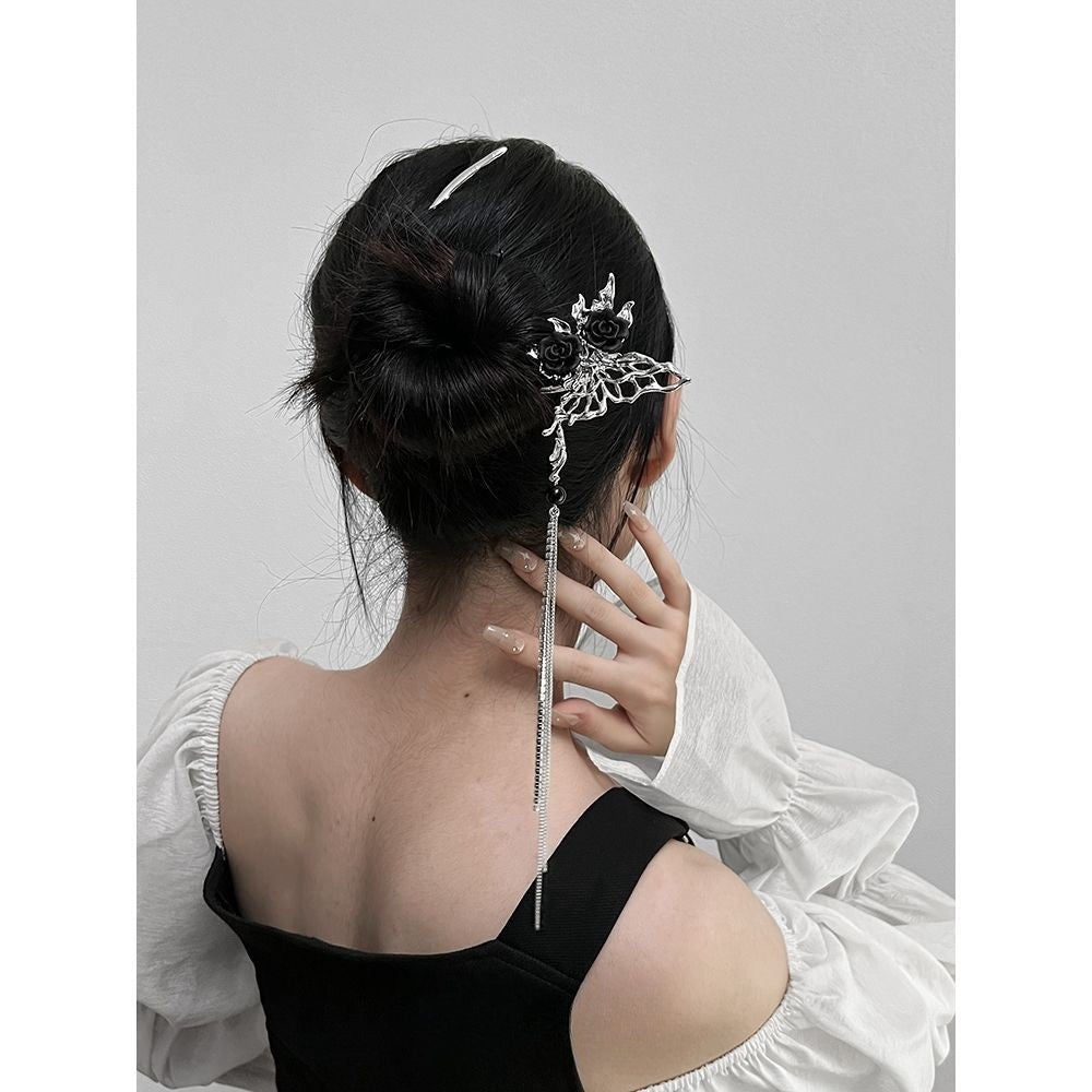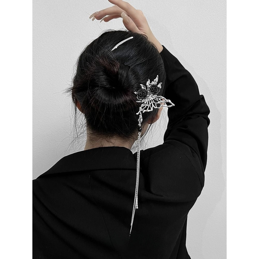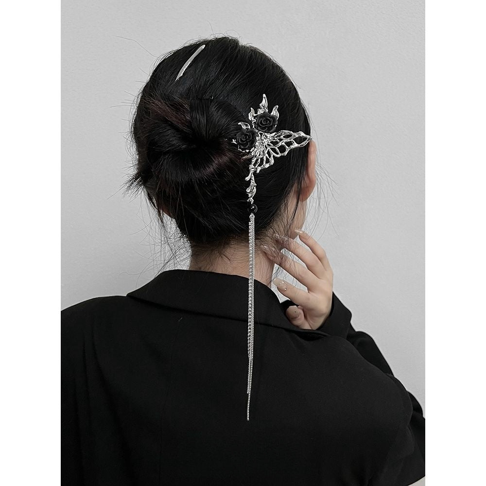 Schmetterling Schwarze Rose Lange Quaste Haarnadel