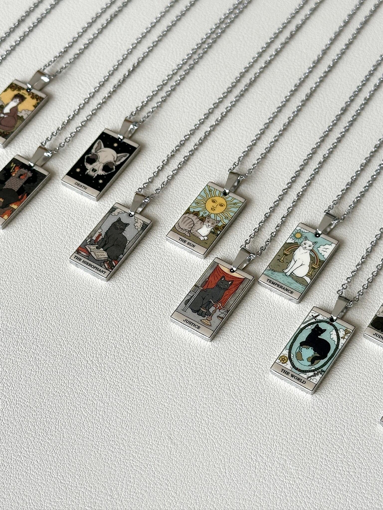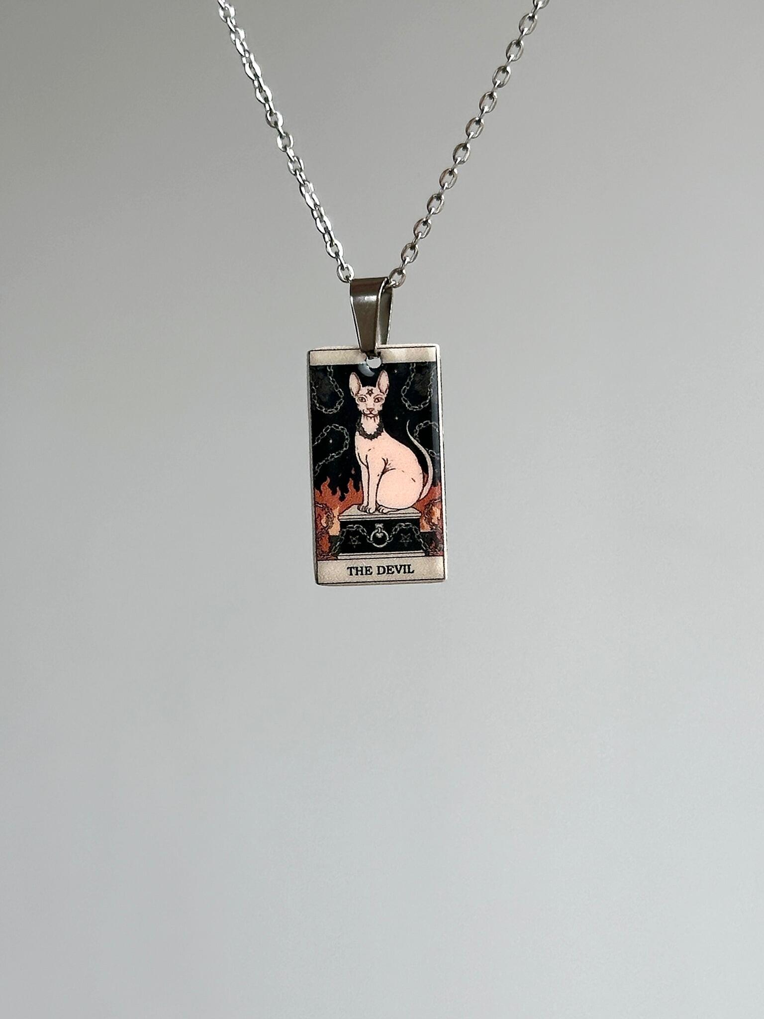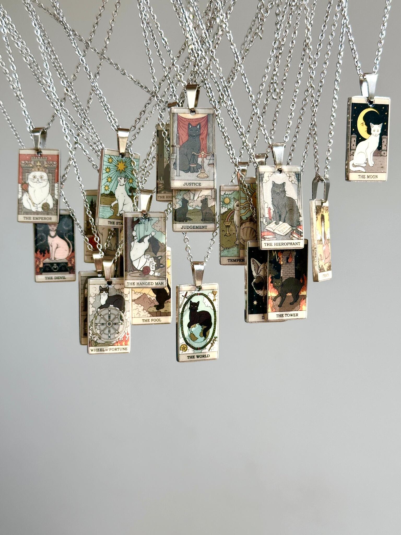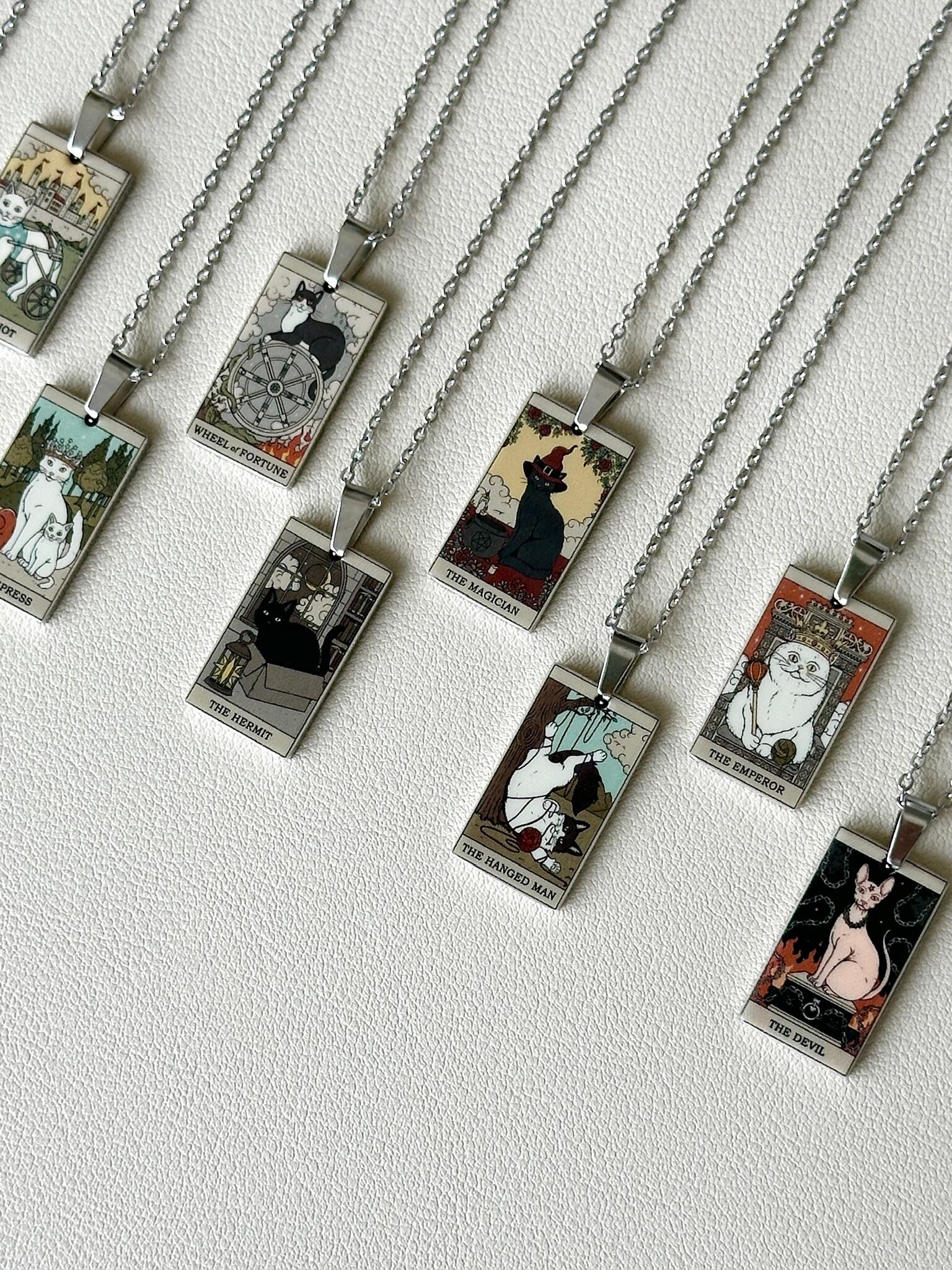 Vintage Katze Große Arkana Tarot Karte Halskette
