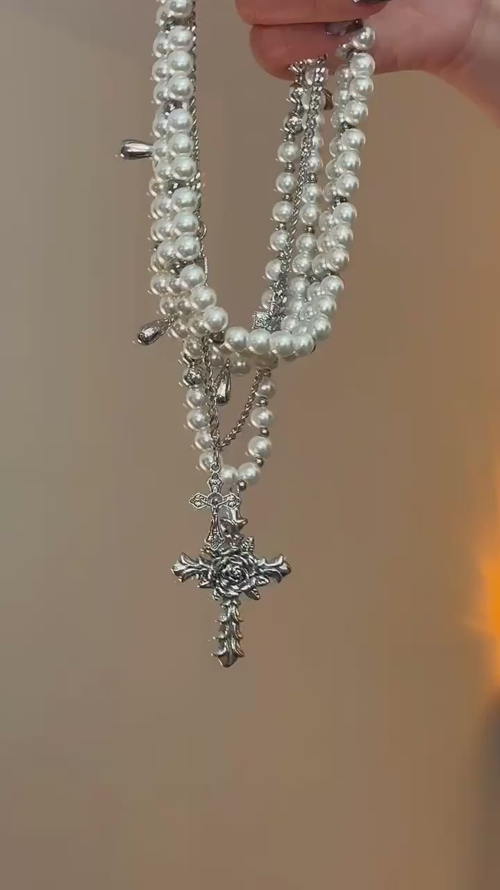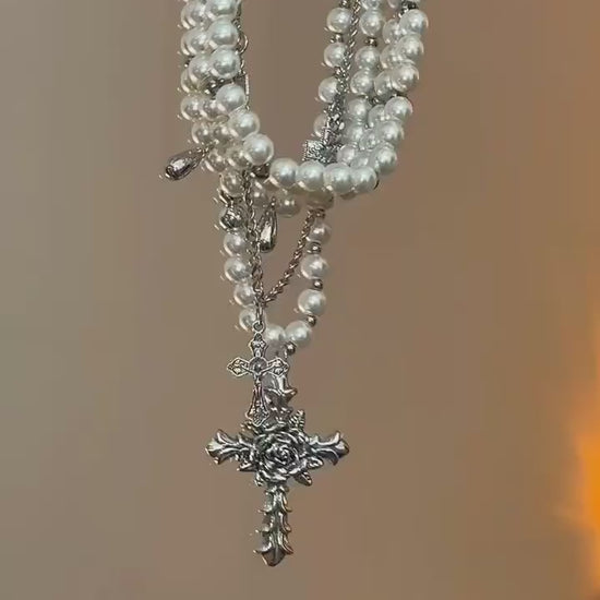 Schickes Designer-Halsband mit Barockperlen und Kreuzverzierung