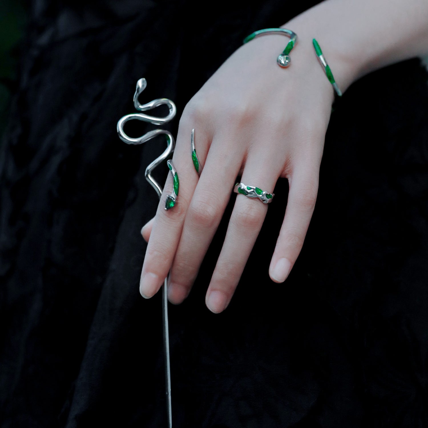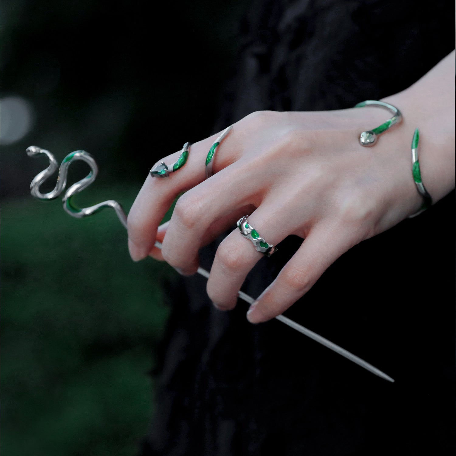 Offener Ring und Armband „Grüne Schlange“ von Slytherin