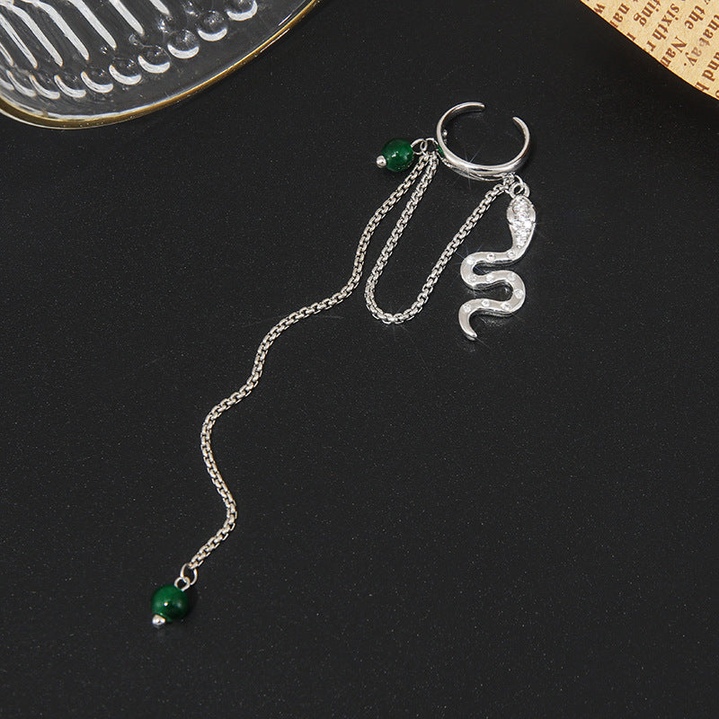 Schicke Ohrmanschette mit Strasssteinen und Schlangenquaste