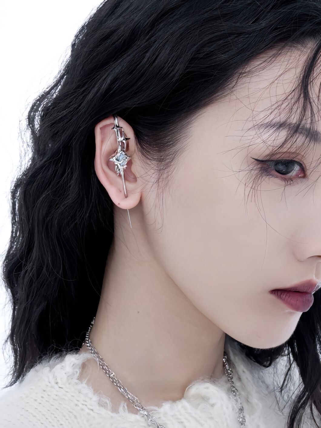 Schicker silberner Stern & blauer Zirkon-Ohrring