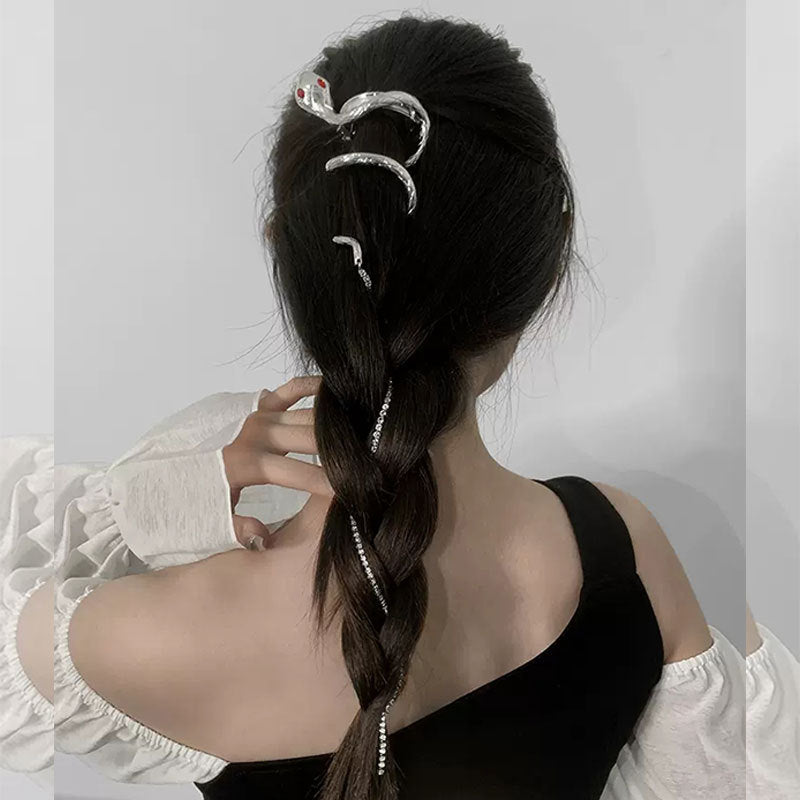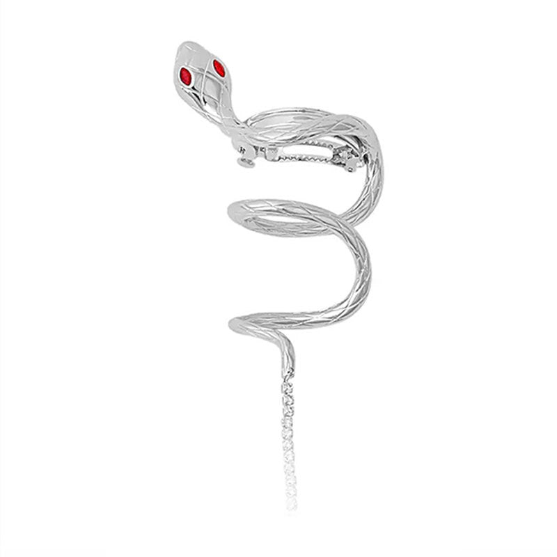 Schick und stylisch, diese Unisex-Haarspange mit der silbernen Schlangenverflechtung im Slytherin-Stil für Damen ist das perfekte Accessoire für Menschen mit langem Haar. Dieses einzigartige Design aus hochwertiger Legierung verfügt über eine mit einer silbernen Schlange verflochtene Haarspange für einen schicken und zeitlosen Look.