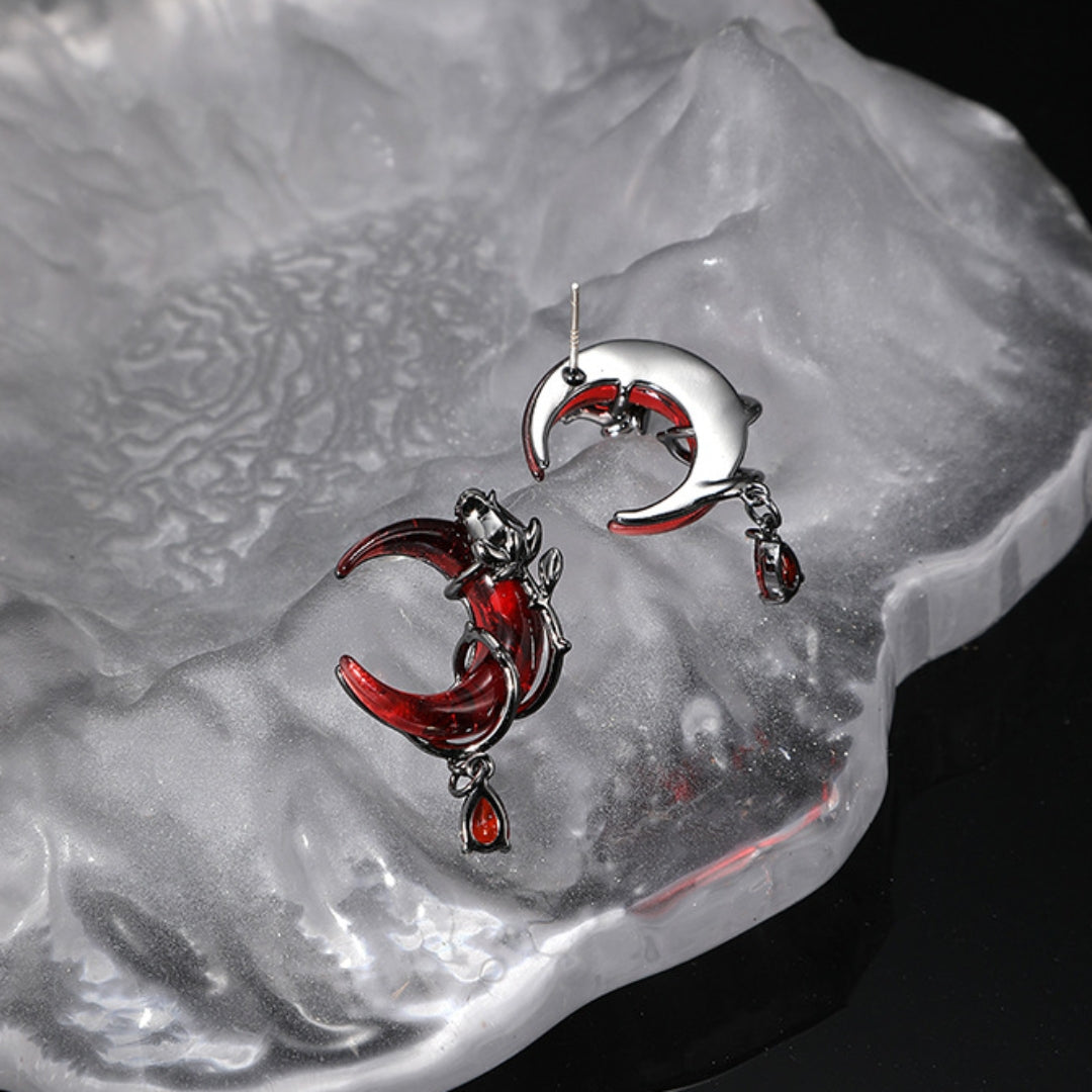 Ohrstecker „Dunkelroter Halbmond & schwarze Rose“