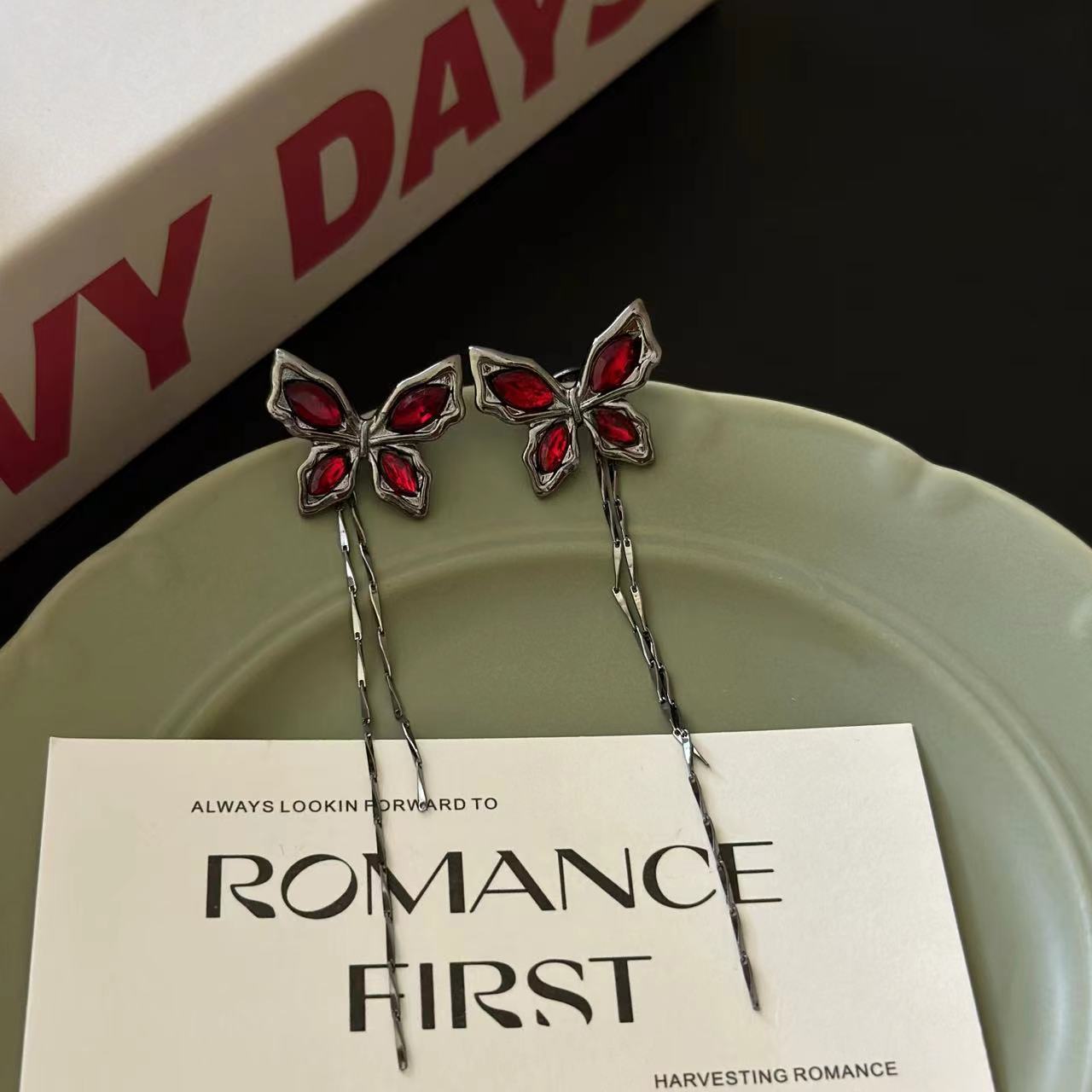 Dunkelroter Spicy Girl Butterfly-Ohrring (kein Ohrlochstechen erforderlich)