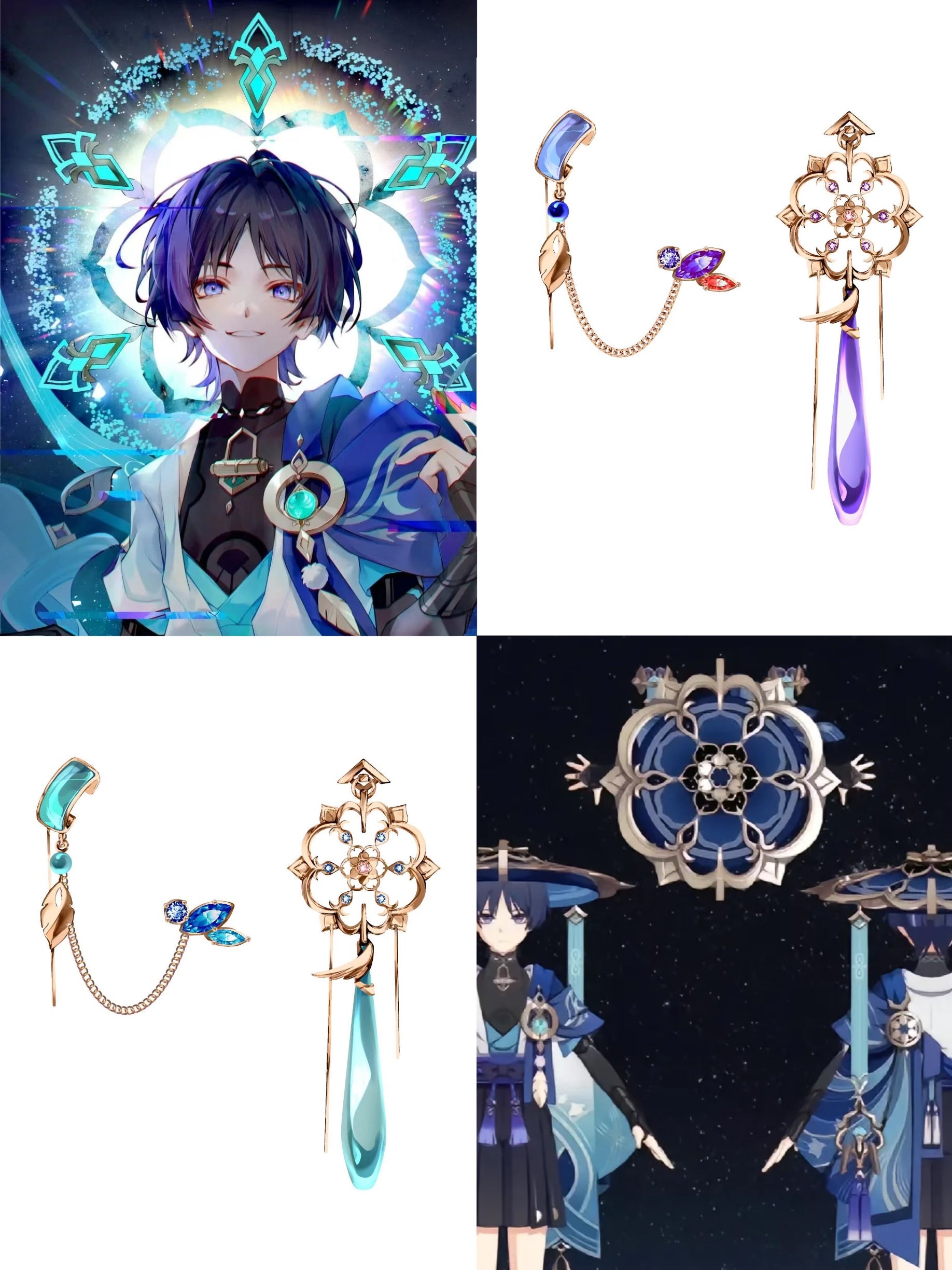 Wanderer Designer Blauer Scaramouche Genshin Impact Ohrring