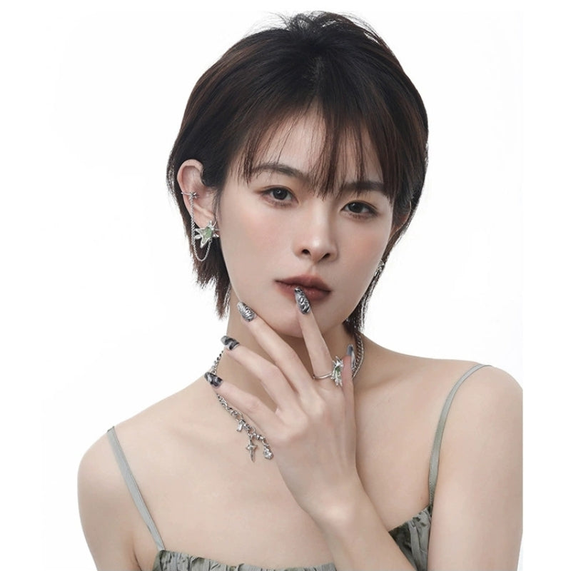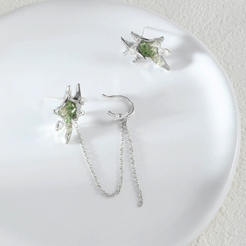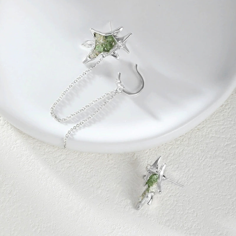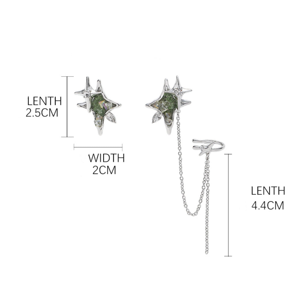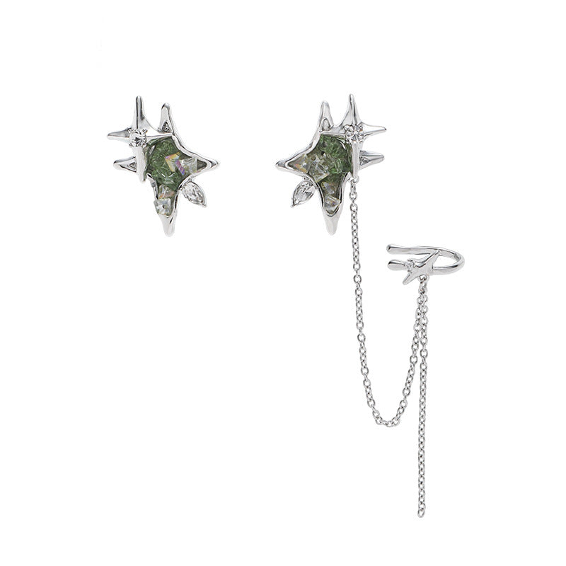 Designer Chic Girl Grüner Stern Asymmetrische Quaste Ohrstecker & Ohrklemme