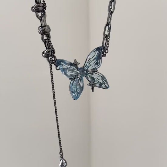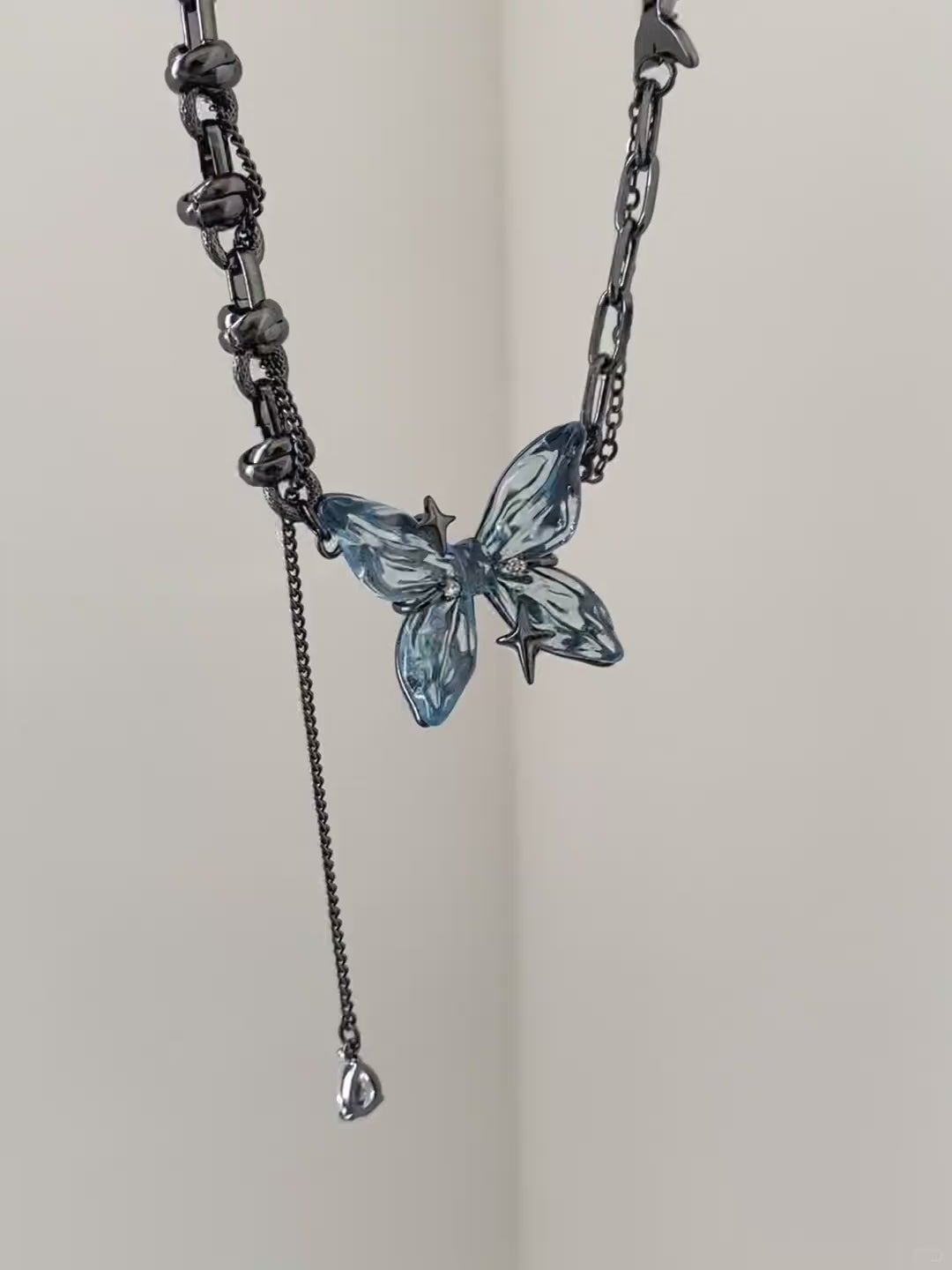 Designer Süßes Mädchen Blauer Schmetterling Choker Halskette