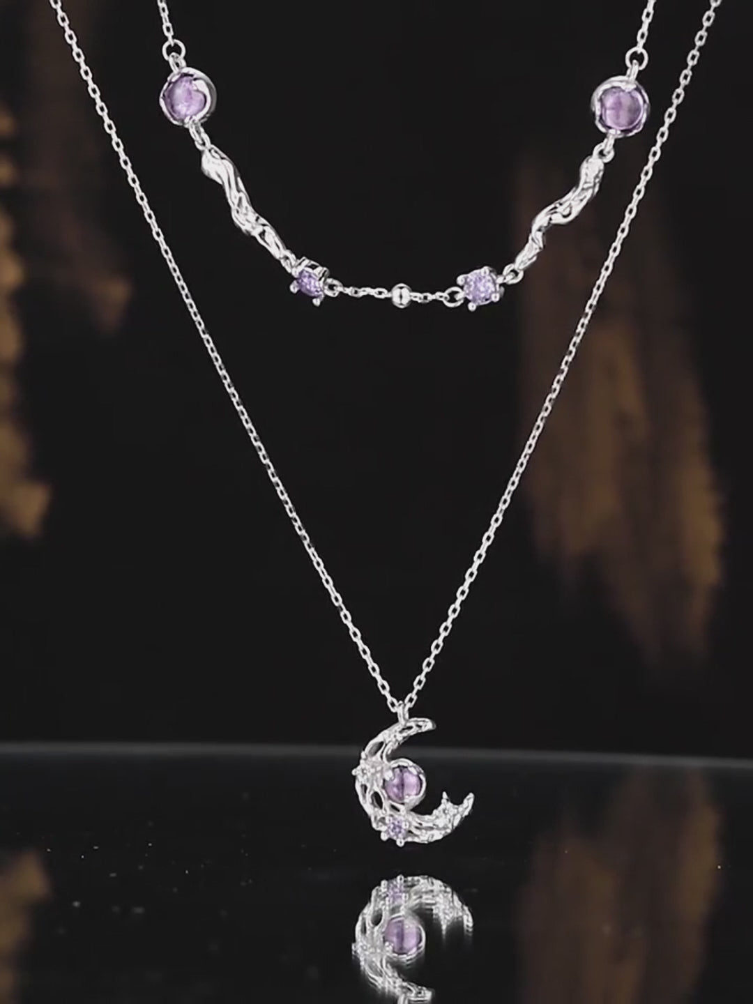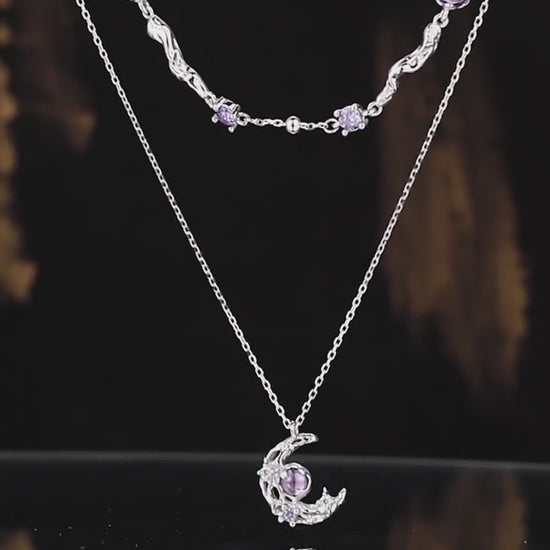 Designer Süße Mädchen Lila S925 Silber Mond Halskette